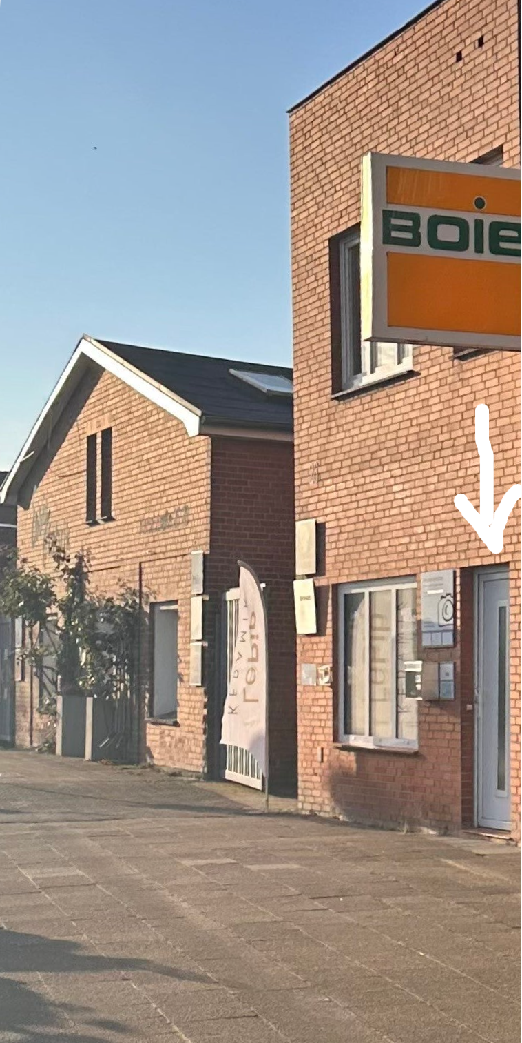 Der Eingang zum Büro befindet sich zwischen dem Keramikstudio und der Firma Boie.